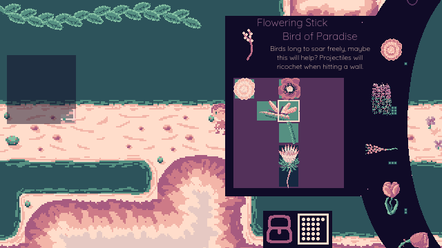 A: In the inventory, select the square grid next to the fruit icon. Then, you can select flowers to place into the grid slots.
